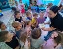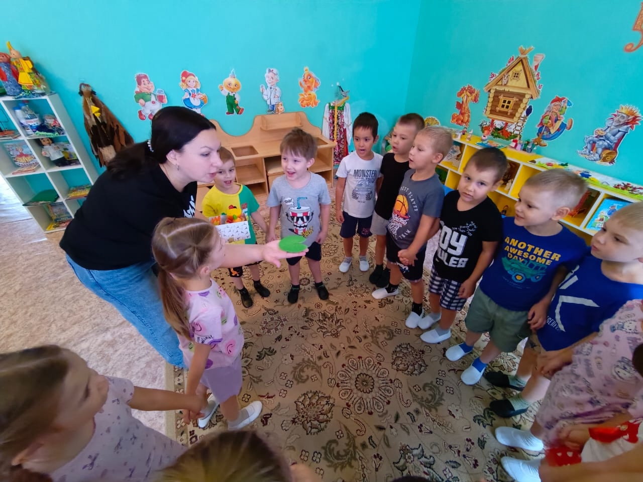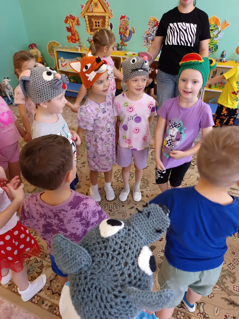 Старшая группа №7 «Пчелки» погрузилась в сказку «Теремок». Каждому ребенку досталась роль, которую он с удовольствием исполнил. Дети сблизились с персонажами, переживали их радости и печали. Роли распределяются по желанию и способностям детей. Каждый стремится принять участие. Театрализованная деятельность помогает детям стать более раскованными и уверенными. Спектакль прошел с большим успехом. Актеры получили массу положительных эмоций.