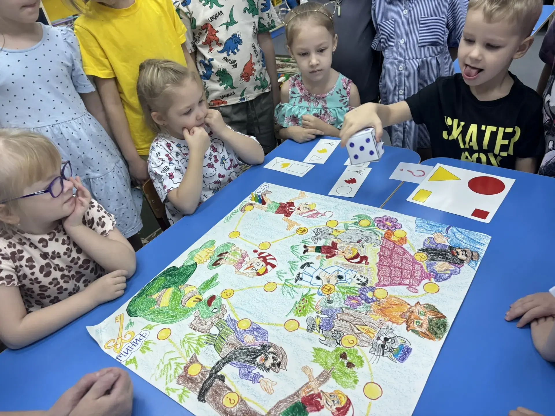 Третий день завершился математическими праздниками. В младших и средних группах прошел квест от Пифа, а в старших и подготовительных — командная игра с самодельными игровыми полотнами. Задания вызвали дискуссии и положительные эмоции.
