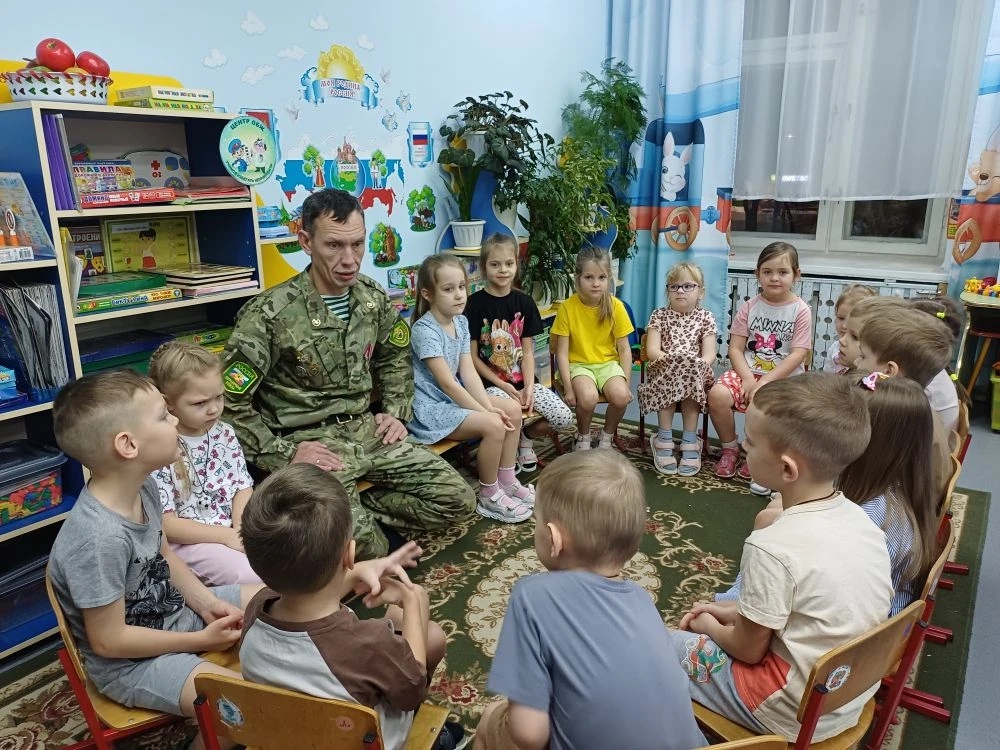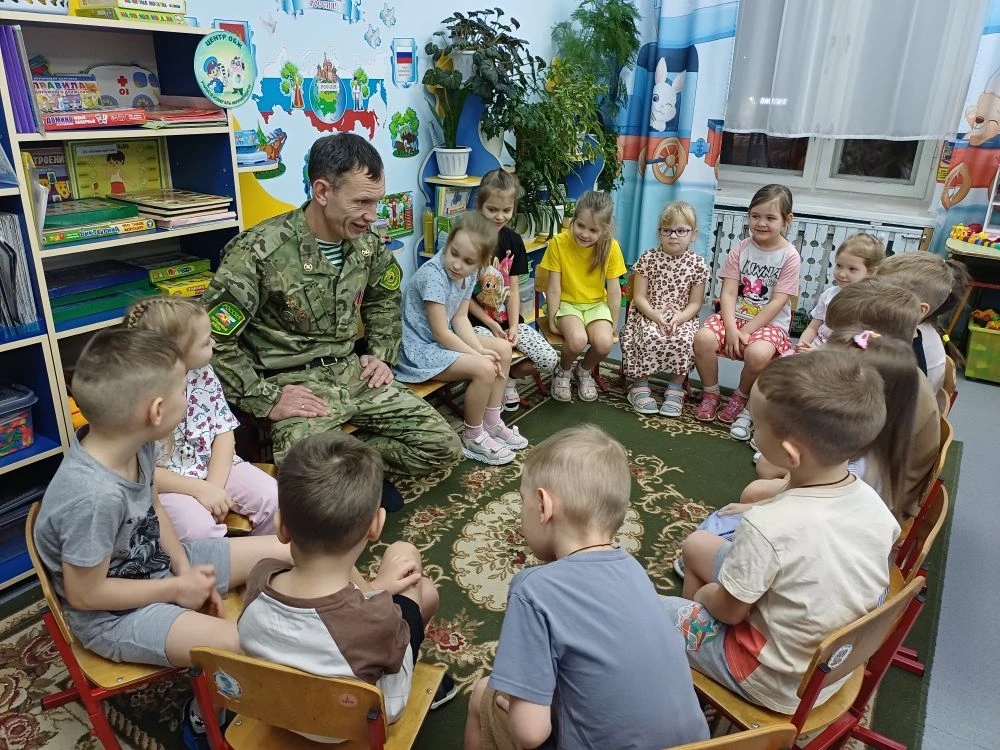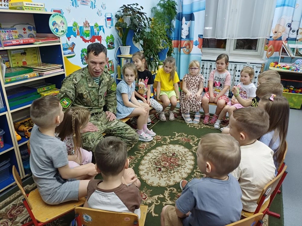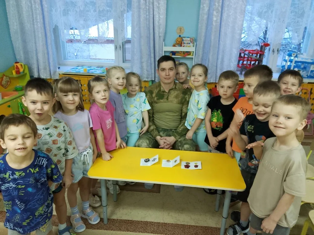 В группах 6 и 7 состоялись встречи с участниками специальной военной операции. Дети с увлечением слушали рассказы героев о военных подвигах . Особое внимание привлек рассказ о медалях, который вызвал живой интерес у детей.
