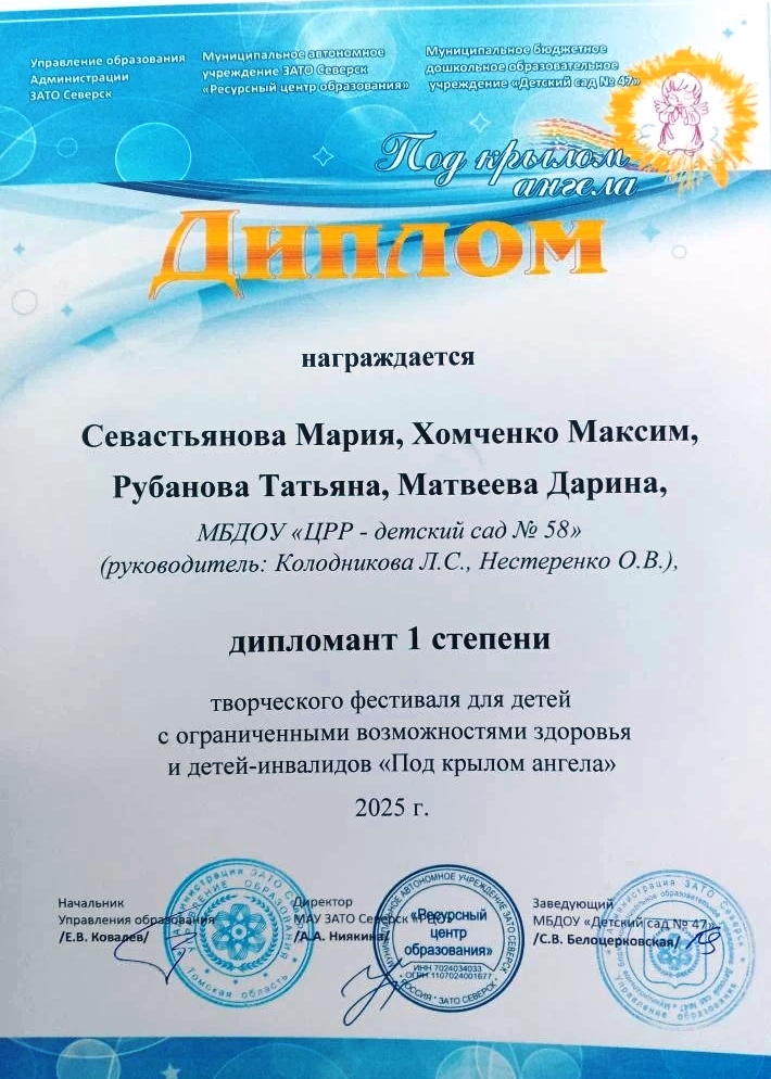 В Северске завершился Муниципальный творческий фестиваль «Под крылом ангела» для детей с ограниченными возможностями. Мероприятие объединило четыре номинации: