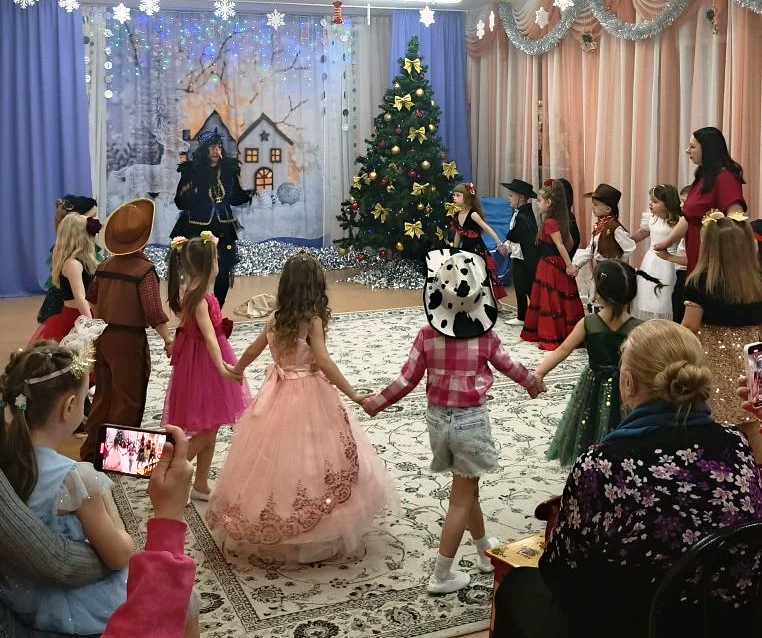 Зал наполнился весельем, улыбками, радостью, песнями, хороводами вокруг ёлки и ожиданием чуда. В воздухе витало ощущение волшебства и праздника. Дети с восторгом встретили Деда Мороза, Снегурочку, Бабу Ягу, снеговика, свинку, Заврасью и даже Кащея. Зажигательные танцы, тёплые пожелания и замечательные стихи создали неповторимую атмосферу праздника.