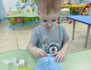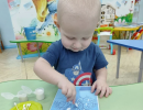 В детских группах раннего возраста начал работать кружок по нетрадиционному рисованию "Волшебные краски". В гости к ребятам пришёл снеговик с настоящим снегом и ватными снежками. Воспитатели и дети обсудили свойства снега: он холодный и пушистый, тает в тепле, а ватные снежки мягкие и тёплые. Занятие включило в себя подвижную игру "Снег глубокий", "Я найду и слеплю снежок!". После игры педагог предложила украсить деревья снежинками. Занятие прошло весело и познавательно, оставив у малышей яркие впечатления и желание продолжать заниматься творчеством.